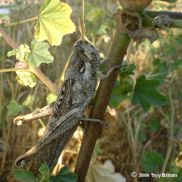 Some type of Band-winged grasshopper (notice the bonus true bug in the upper right).