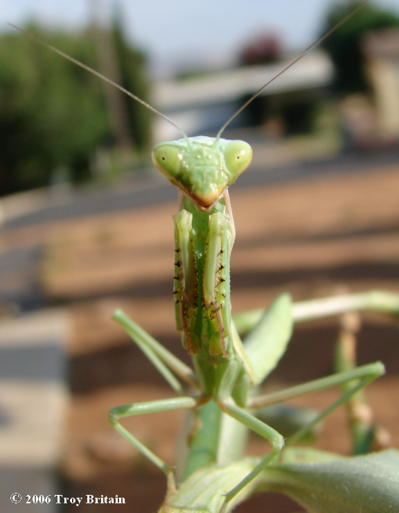 Bow before our insect overlords! An adult (female I believe), possibly a Mediterranean mantis (Iris oratoria).
