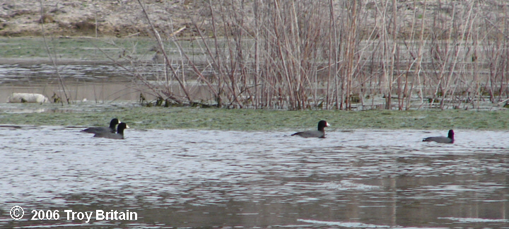 Some American Coots (Fulica americana) in the same pond as the tadpoles